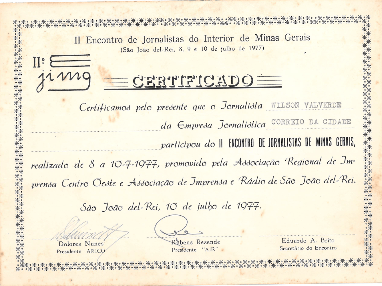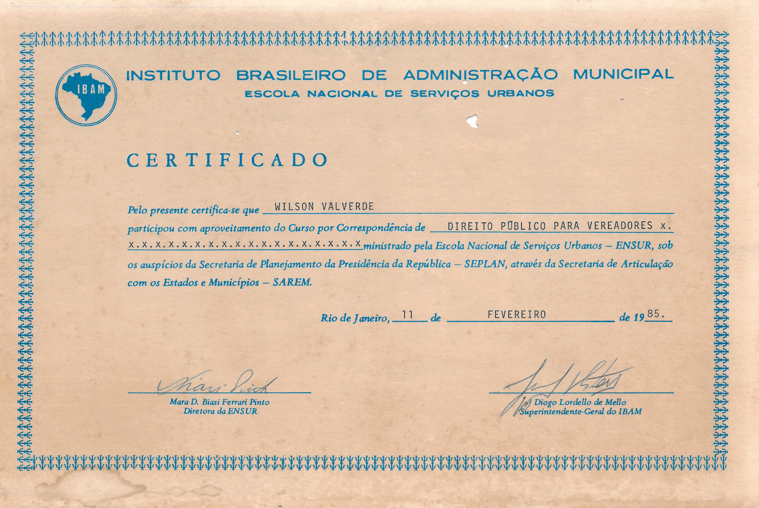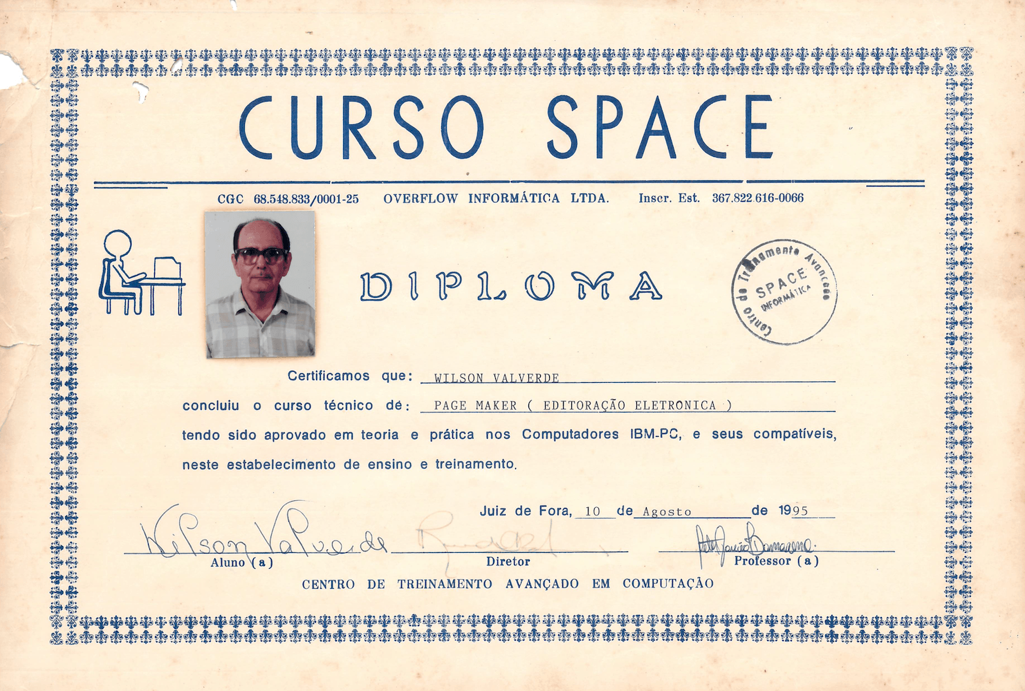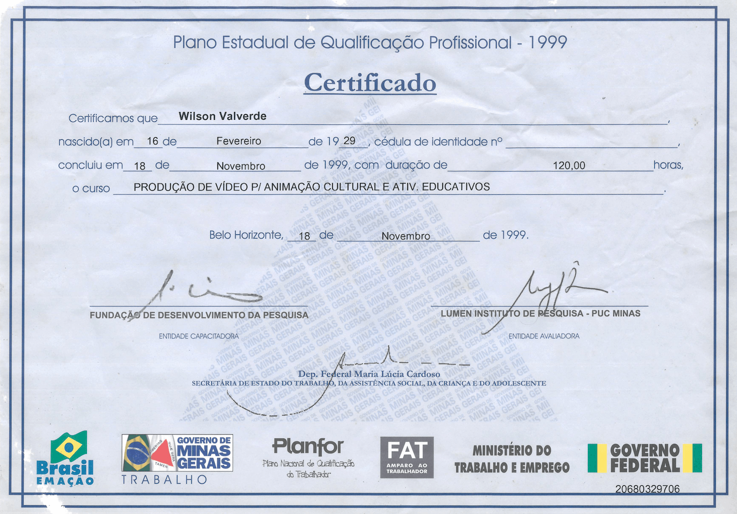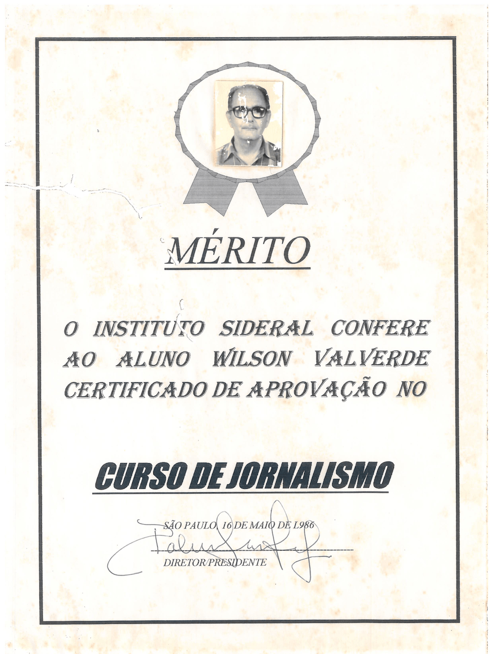 Aqui guardamos com carinho o acervo de diplomas, certificações e memórias das qualificações conquistadas pelo jornalista e criador do Jornal Meia Pataca, Wilson Valverde