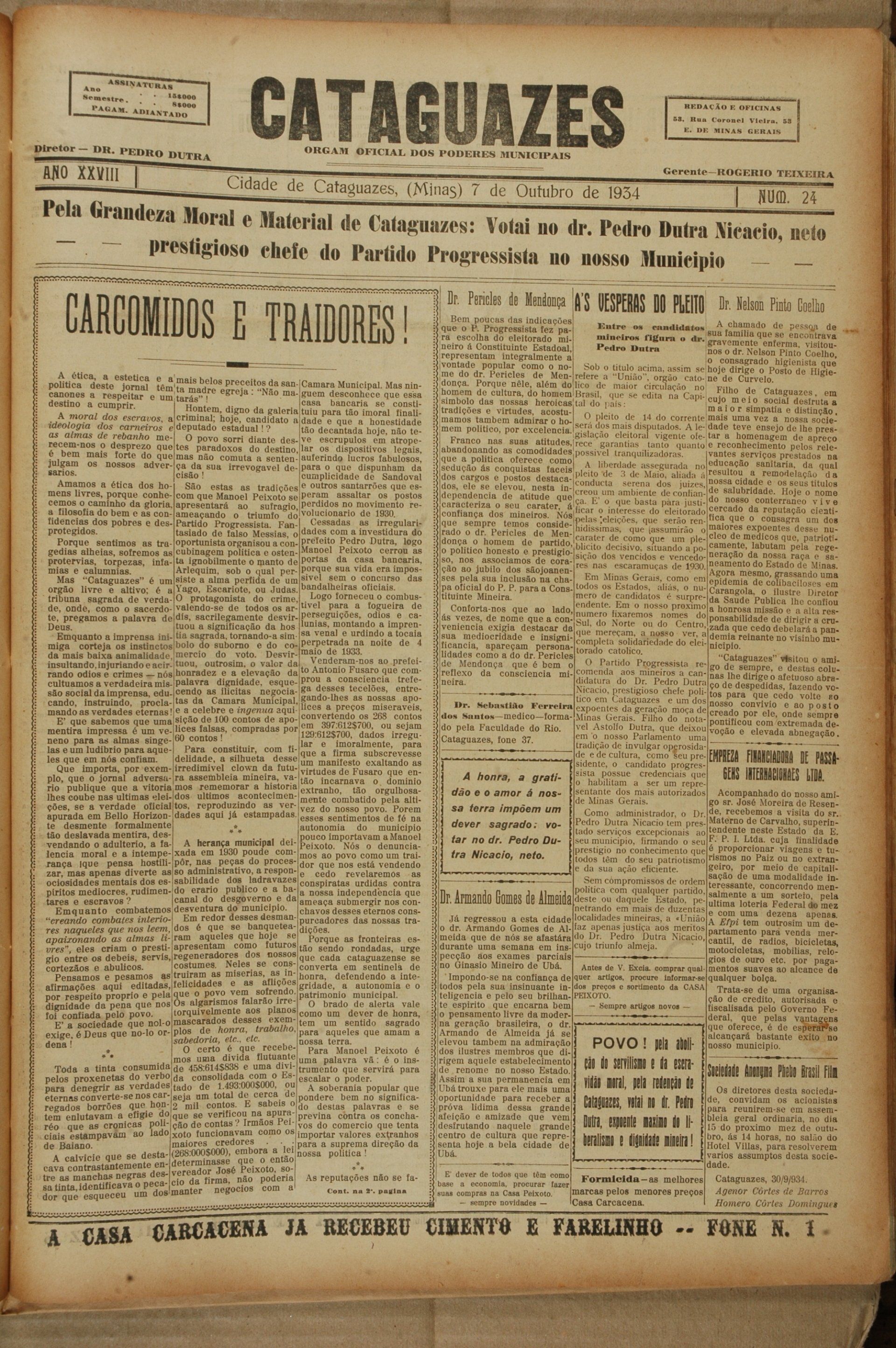 “A personalidade invulnerável do atual administrador advoga tão somente as causas que redundam aos interesses da coletividade cataguasense. Daí o conflito com aqueles que visam o interesse pessoal.” (Jornal Cataguases, 20.06.1931)